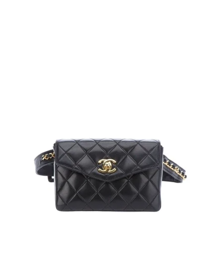 Calfskin Quilted Flap Waist Belt Bag ??Black??