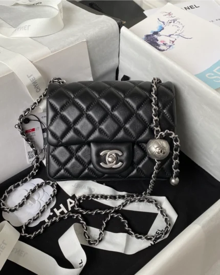 Shiny Lambskin Silver Ball Mini Flag Bag ??Black??
