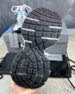 The overall shape of the 3XL Sneaker draws on the creative ideas of the Tra and Runner shoes, which is equivalent to removing the outer frame of the Tra shoe body while inheriting the streamlined shape of the Runner and the flat toe of the Tra. A pair of tied shoelaces are added to the front of the shoe for concave shape.