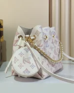 The Bella ??Dream Cream?? handbag from the Dream Collection is a seasonal reinterpretation of a classic silhouette. Crafted from supple Mahina calfskin leather with perforated Monogram details, it features a soft watercolor-inspired finish in Dream Cream tones.
