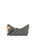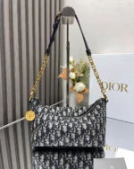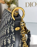 Blue Jacquard Hobo Bag with Adjustable Chain Strap