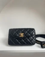 Calfskin Quilted Flap Waist Belt Bag ??Black??
