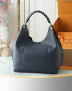 This elegant edition of the Carmel handbag is crafted from Mahina calfskin, delicately perforated with the House??s signature Monogram. Sized to store daily essentials, including a laptop, the versatile design is elevated with a removable leather braided charm. Note the address tag, which pays tribute to heritage Louis Vuitton trunks.