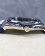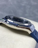 - Bracelet: Blue rubber strap with alligator leather texture push button deployant clasp.
