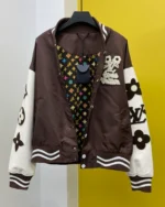 Embroidered Varsity Jacket ??Brown??