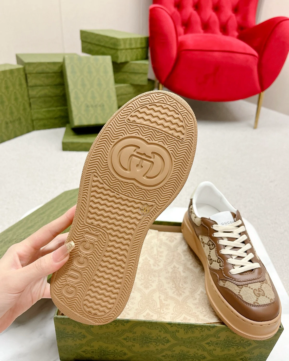 - Packaging instructions: Equipped with customized shoe box + dust bag