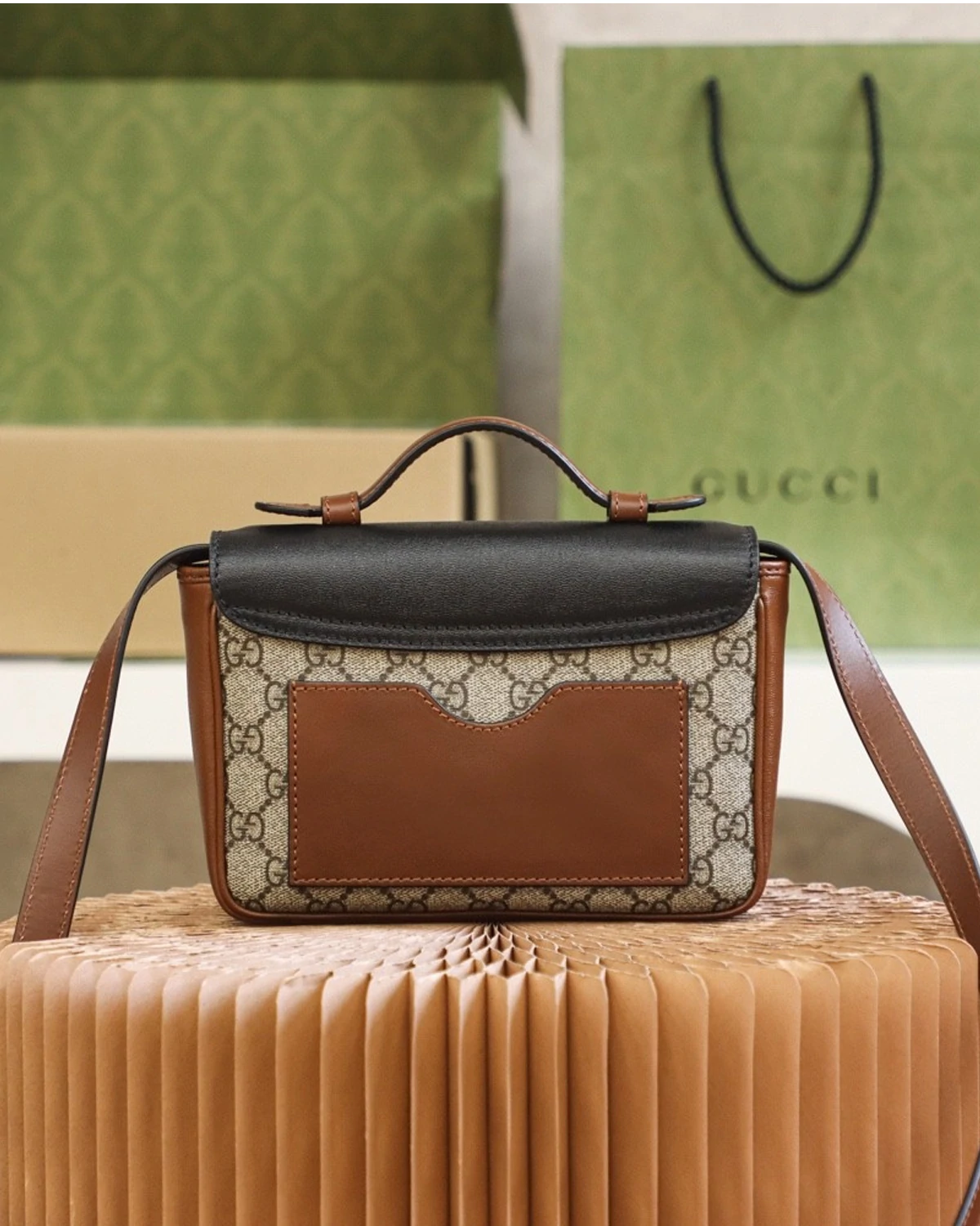 | Material | GG monogram coated canvas, smooth black leather flap |