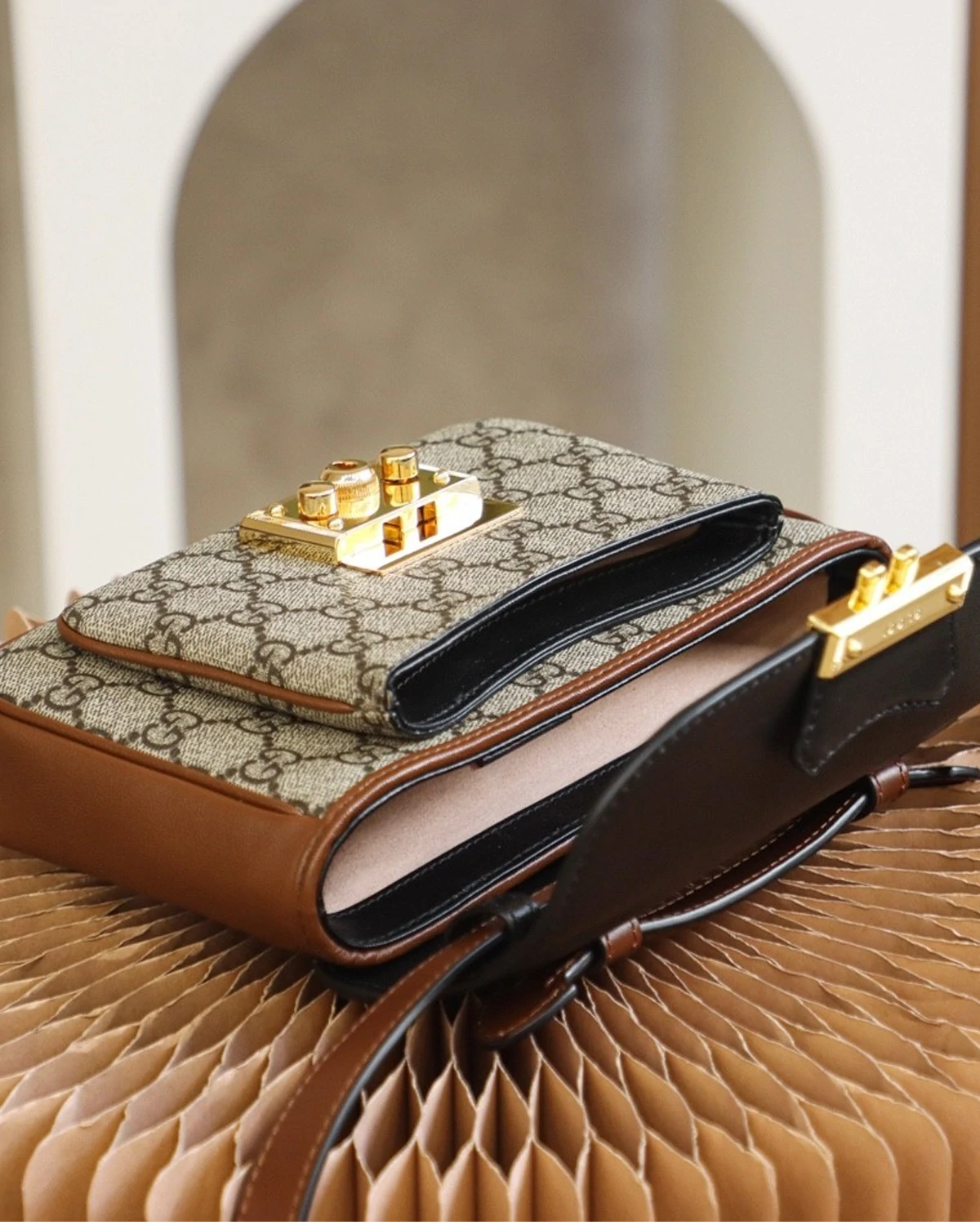| Model | GG Supreme Monogram New Sakai Lux Calfskin Mini Padlock Flap Pocket Shoulder Bag |