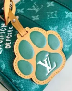 The Keepall Bandouli??re 25 is a stylish little city bag made from Monogram Heritage canvas with matching-colored leather trim. Pharell Williams signs the bag with the ??Marque L.Vuitton D??pos??e,?? originally found on Damier canvas. It comes with a padded bag charm in the shape of a dog??s paw.