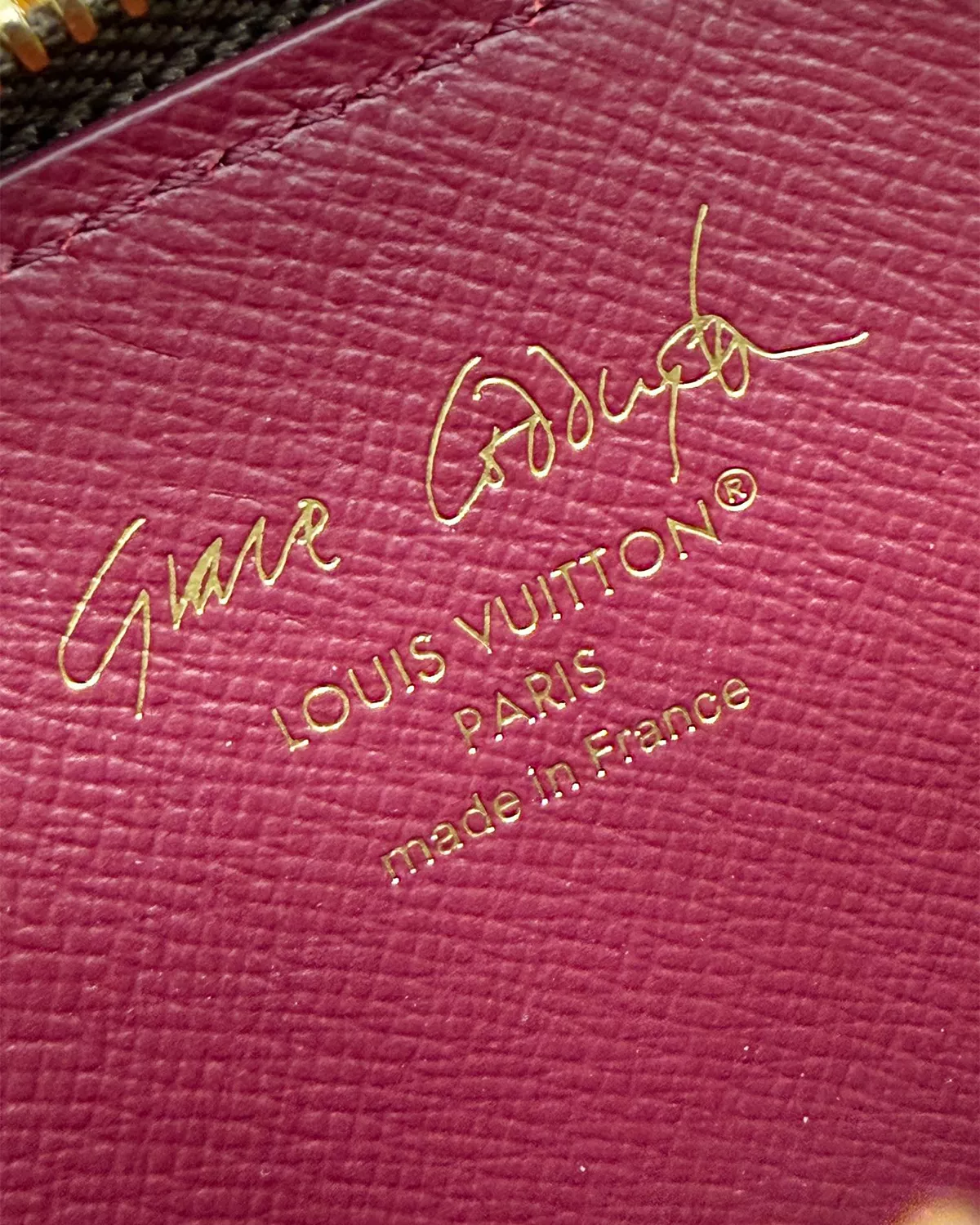 From the?Grace Coddington ??Travels With Grace?? Collection, the Kitty Coin Purse celebrates playful artistry and refined craftsmanship. Shaped like a cat??s face, this charming purse showcases Grace Coddington??s exclusive hand-drawn feline illustration, set against the signature monogram coated canvas.