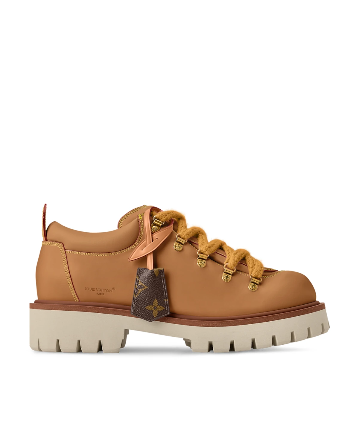 The LV Remix derby in calf leather draws inspiration from classic hiking boots, reimagining their proportions to create a fashion-forward silhouette