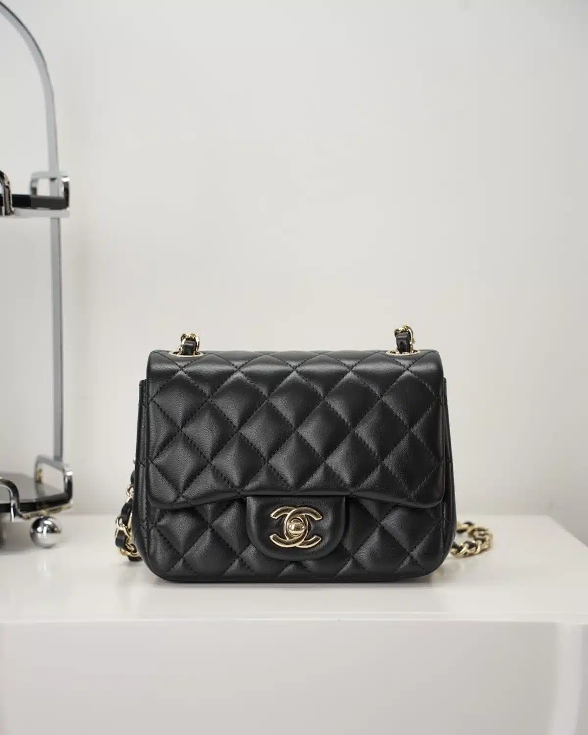 The CF Mini? Classic Flap (??Square Mini??) handbag is crafted from luxurious caviar-grain calfskin leather, renowned for its durability and elegant pebble texture. With its compact 17cm size, this timeless piece is both practical and chic, holding daily essentials while maintaining a refined silhouette. Perfect for casual outings or formal occasions, it embodies effortless Parisian elegance.