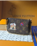 These Vivienne Winter Holiday Mini Pochette Accessories feature a playful motif of the brand’s mascot. Crafted from the iconic Monogram canvas with leather details, the accessories can be easily attached to a handbag or carried by hand. The Vivienne-inspired zipper pulls also boast a sleek, lustrous gold finish.