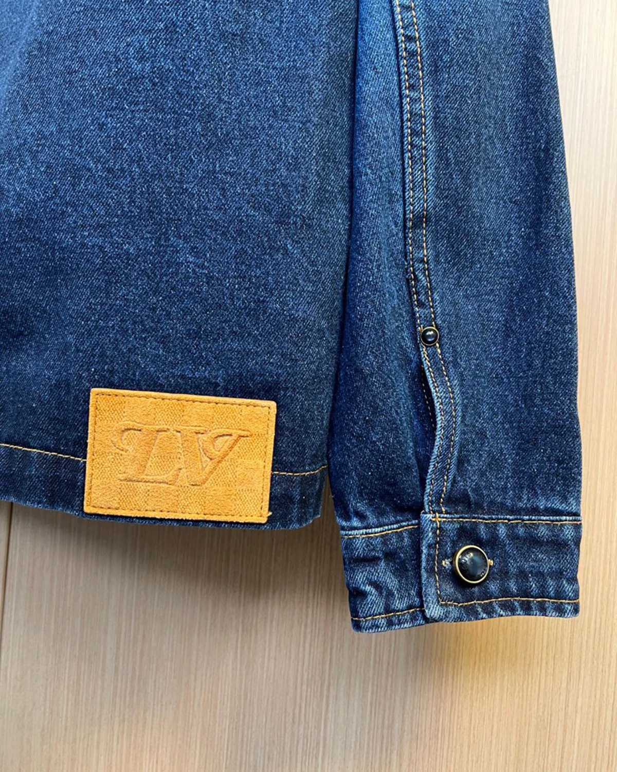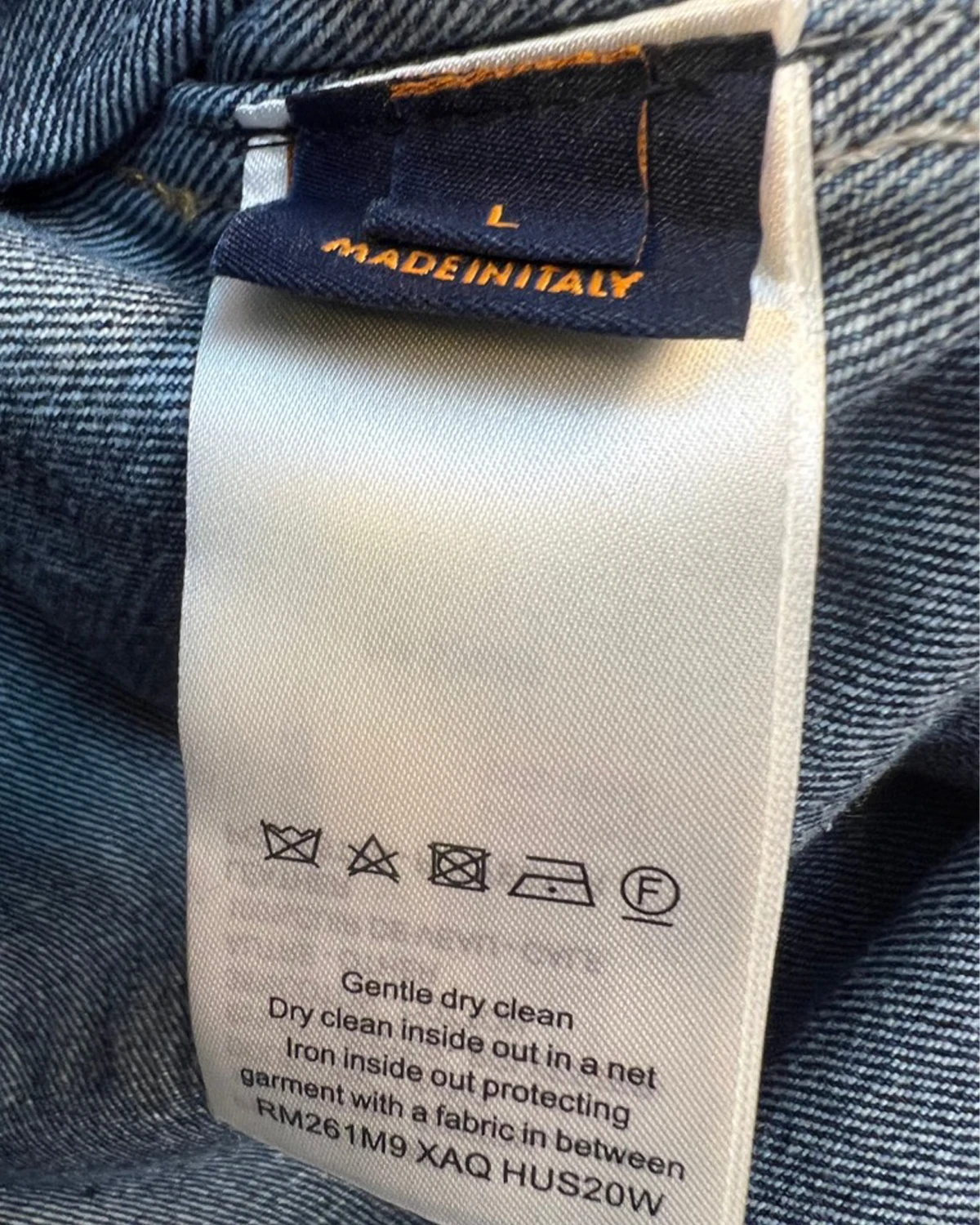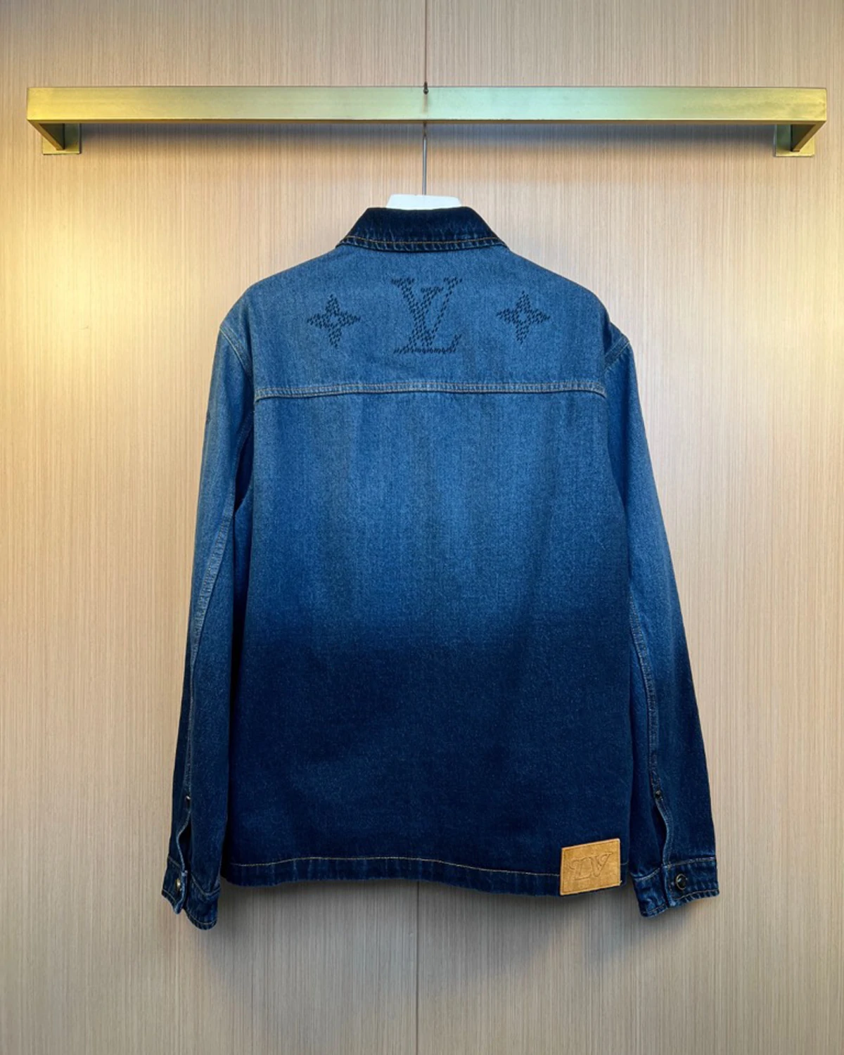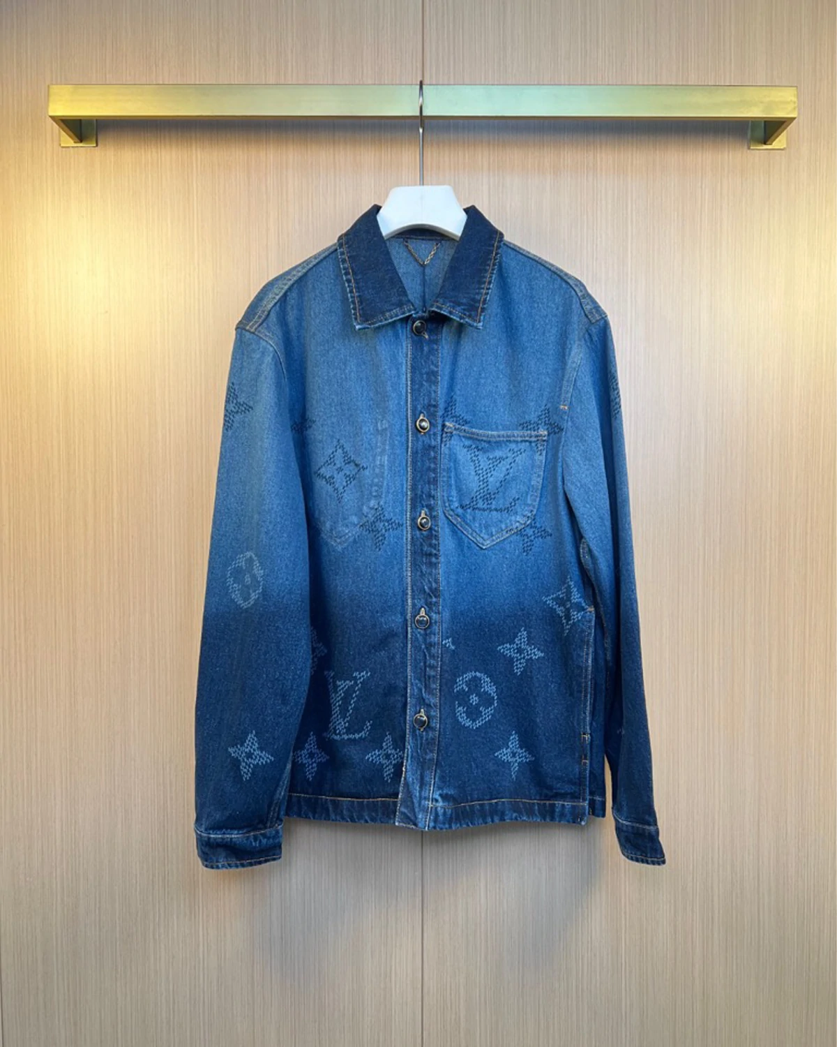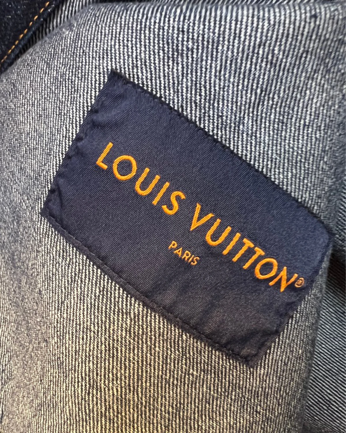 This organic denim workwear overshirt has an easy relaxed fit with a washed vintage finish. It is adorned with a Monogram Seeds motif with a tonal gradient effect. It has two chest pockets, one of them internal, and is signed with an embossed leather signature patch above the hem at the back. Matching pants make a total look.