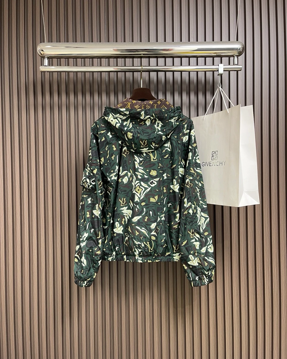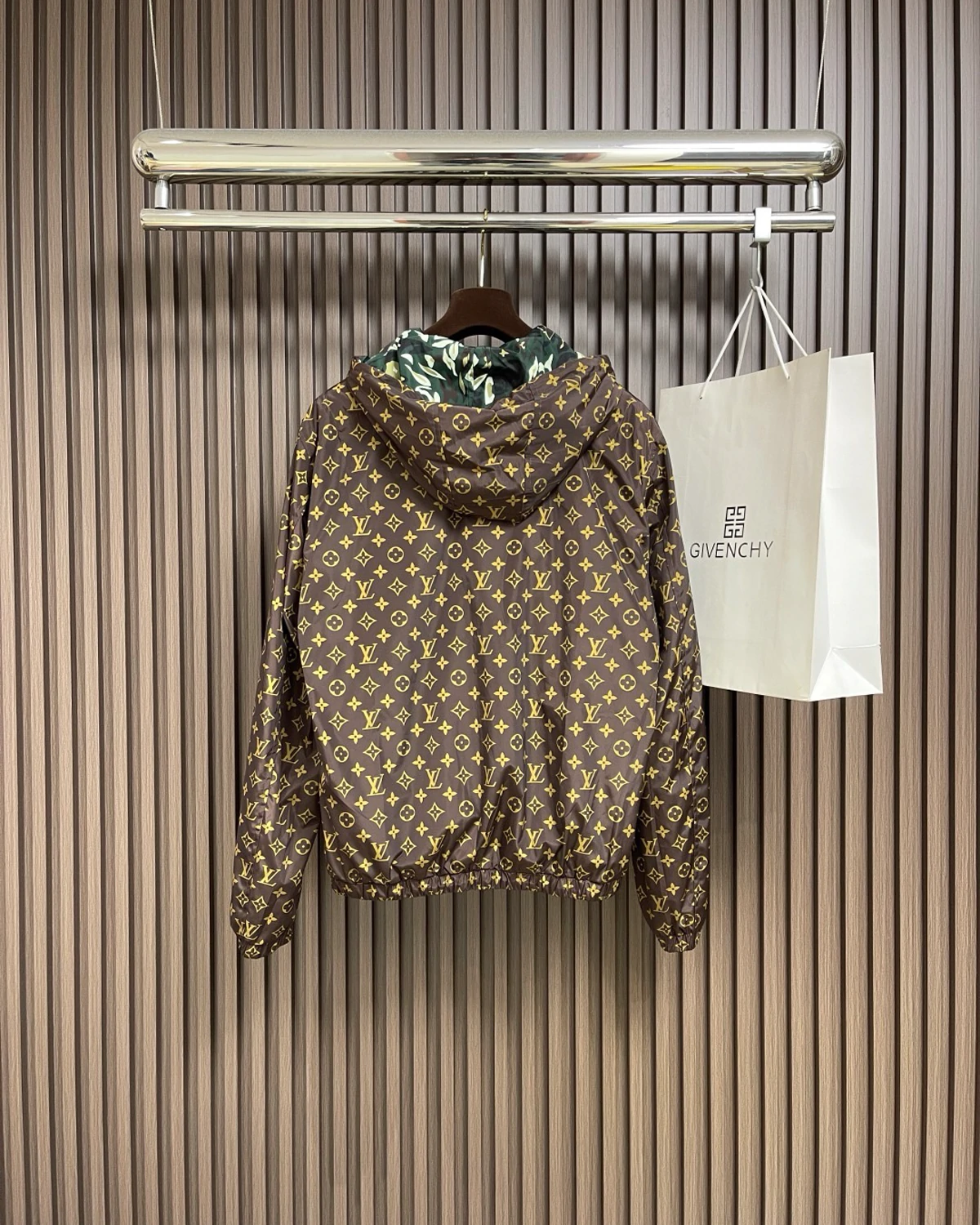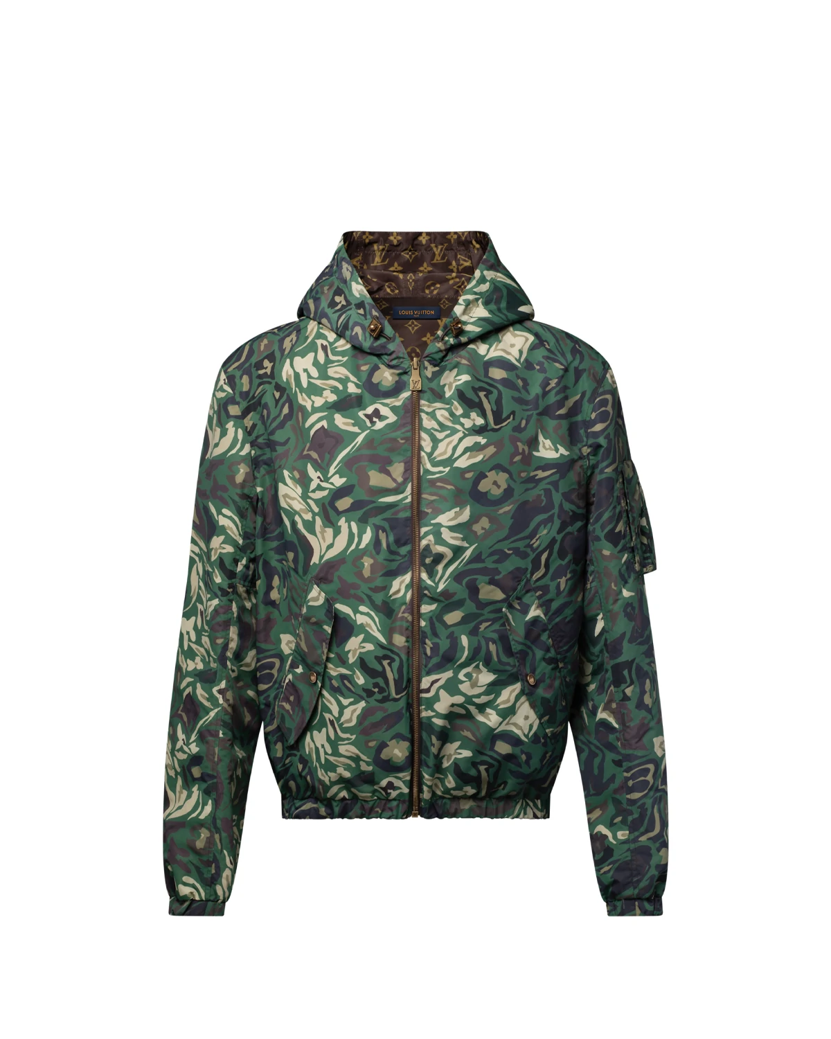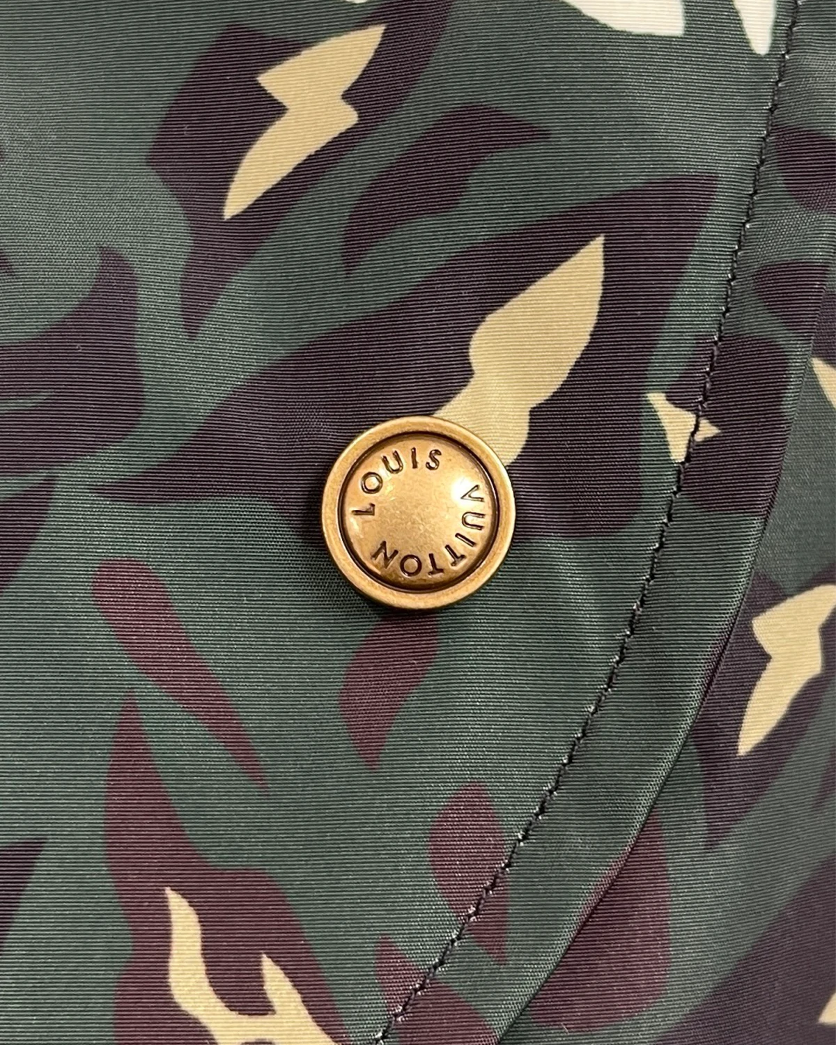 This geometric nylon trench coat features a double-sided design. One side is adorned with the LV Camo pattern from the 2025 autumn fashion show, while the other side is embellished with Monogram jacquard patterns, adding a touch of elegance. It can be worn in various styles.