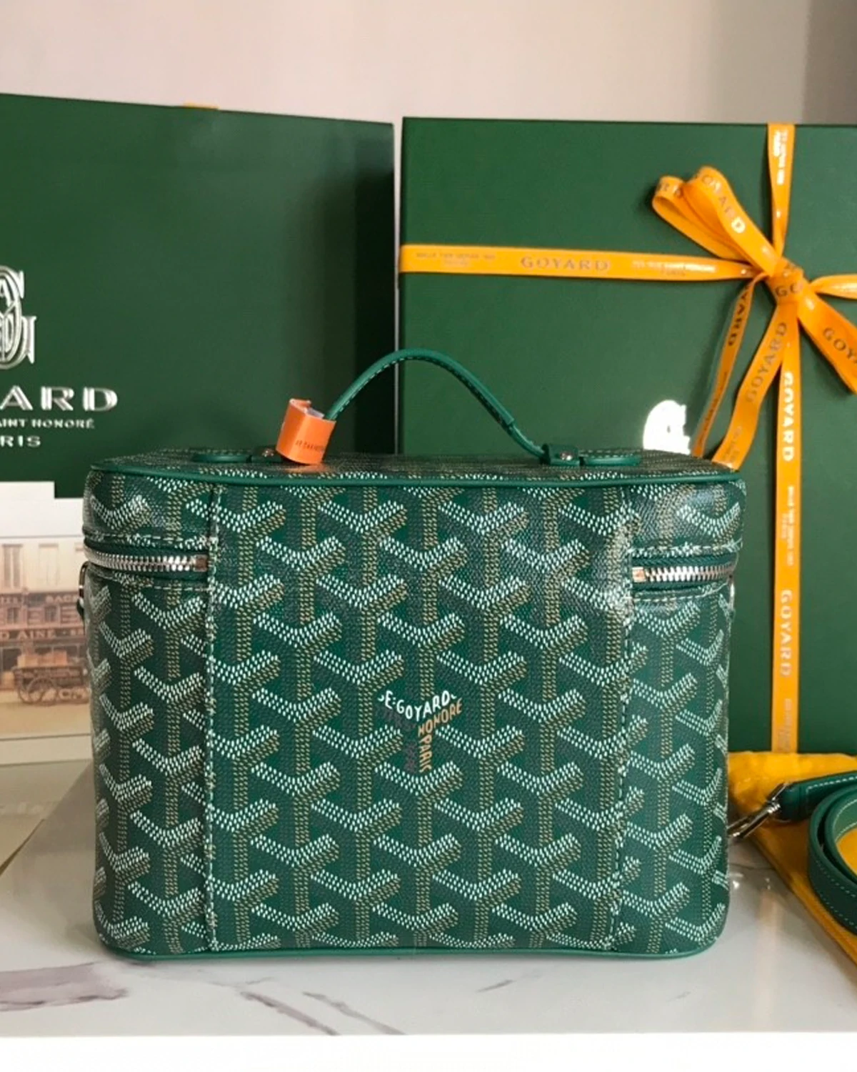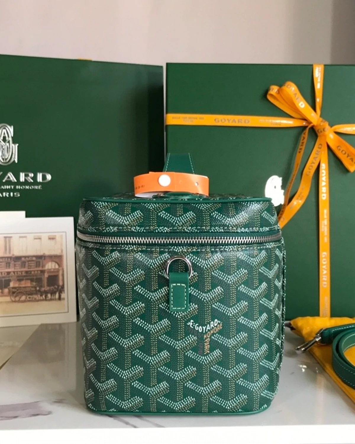 | Material | Goyardine coated canvas with leather trim |