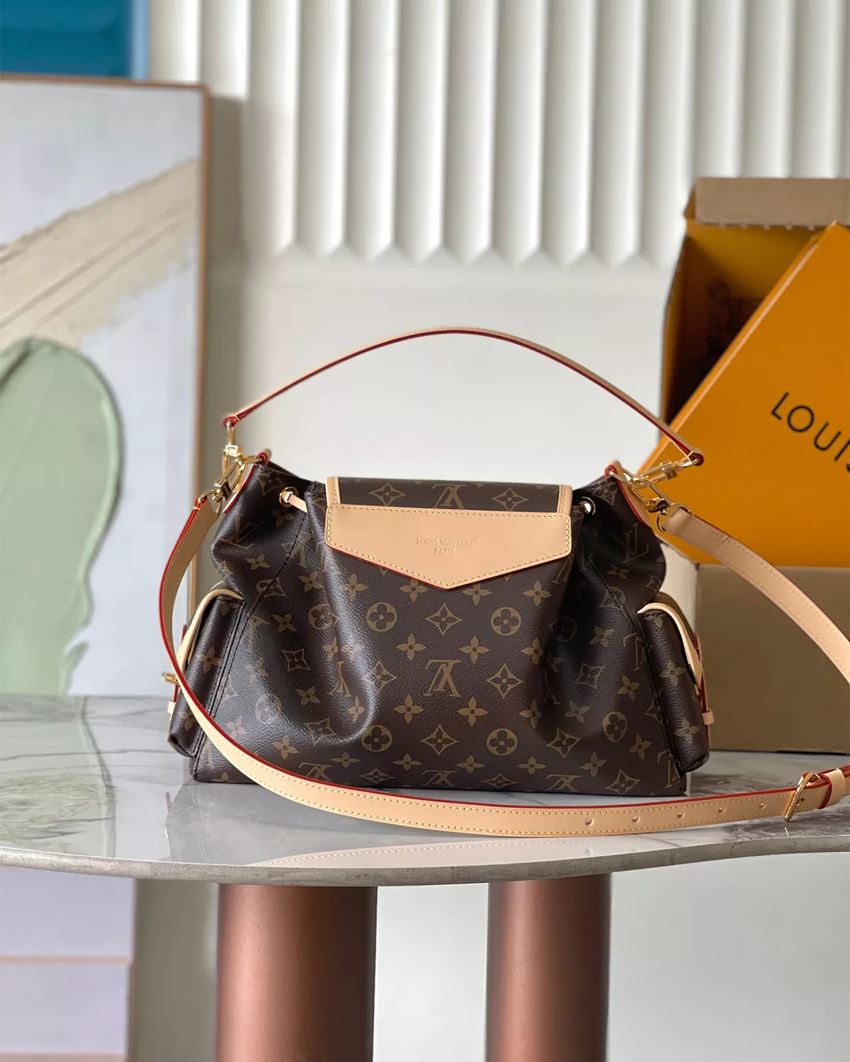 | Material | Monogram coated canvas and Taiga cowhide leather |