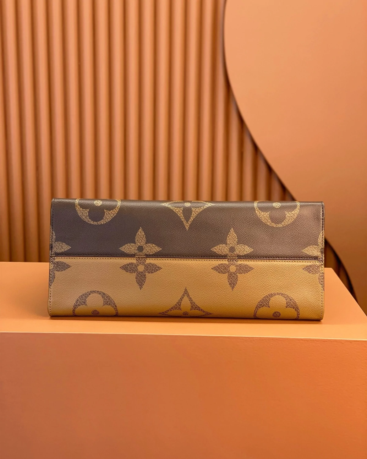 Fashioned from Monogram Giant canvas, the OnTheGo GM tote bag is as striking as it is practical. A Monogram Reverse pattern on the sides and handles creates a stylish contrast in color and scale. With its generous capacity, shoulder straps and iconic Toron top handles, this versatile GM model is an ideal bag for everyday wear.