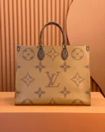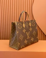 Fashioned from Monogram Giant canvas, the OnTheGo GM tote bag is as striking as it is practical. A Monogram Reverse pattern on the sides and handles creates a stylish contrast in color and scale. With its generous capacity, shoulder straps and iconic Toron top handles, this versatile GM model is an ideal bag for everyday wear.