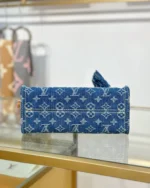 This OnTheGo PM showcases the return of the House??s iconic Monogram denim, accented with signature natural cowhide leather trims. The versatile handbag is refined with gold-tone hardware and secures with a magnetic flap closure. Sized to store a tablet amongst other everyday essentials, it can be carried by hand or worn cross-body thanks to the removable strap.