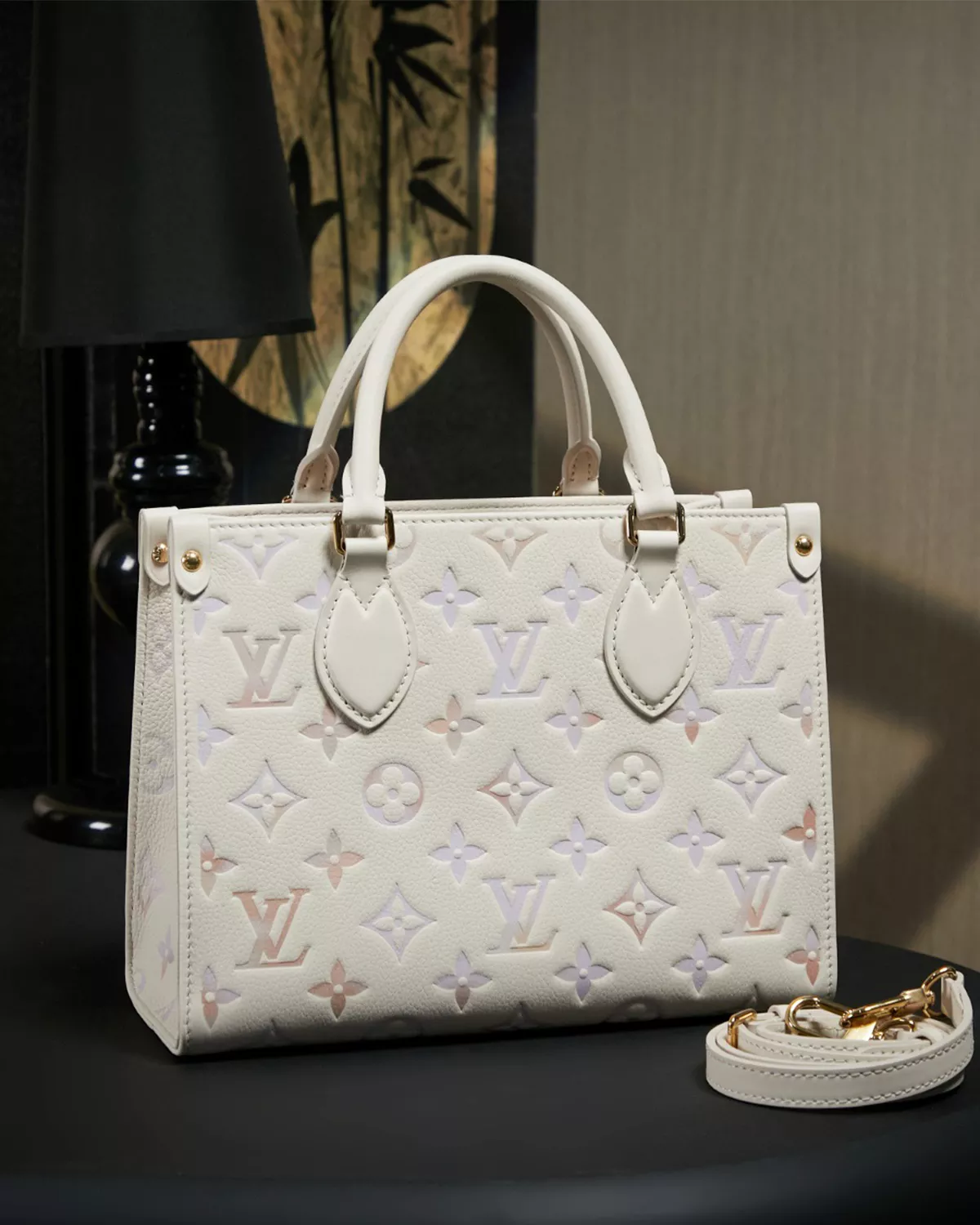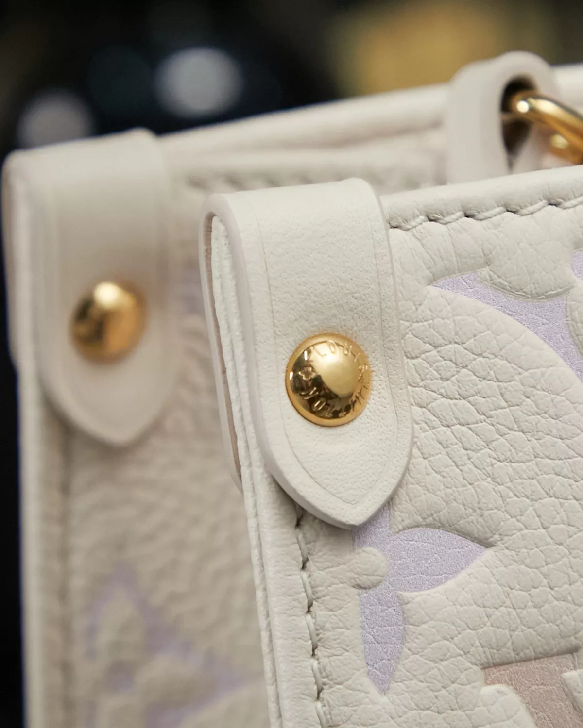 The OnTheGo PM ??Dream Cream Monogram Empreinte?? embodies elegance and creativity, blending artistry with practicality. Crafted in embossed grained cowhide leather using a unique electronic printing technique, this tote showcases a watercolor-like gradient effect that captures the dreamy essence of the collection.