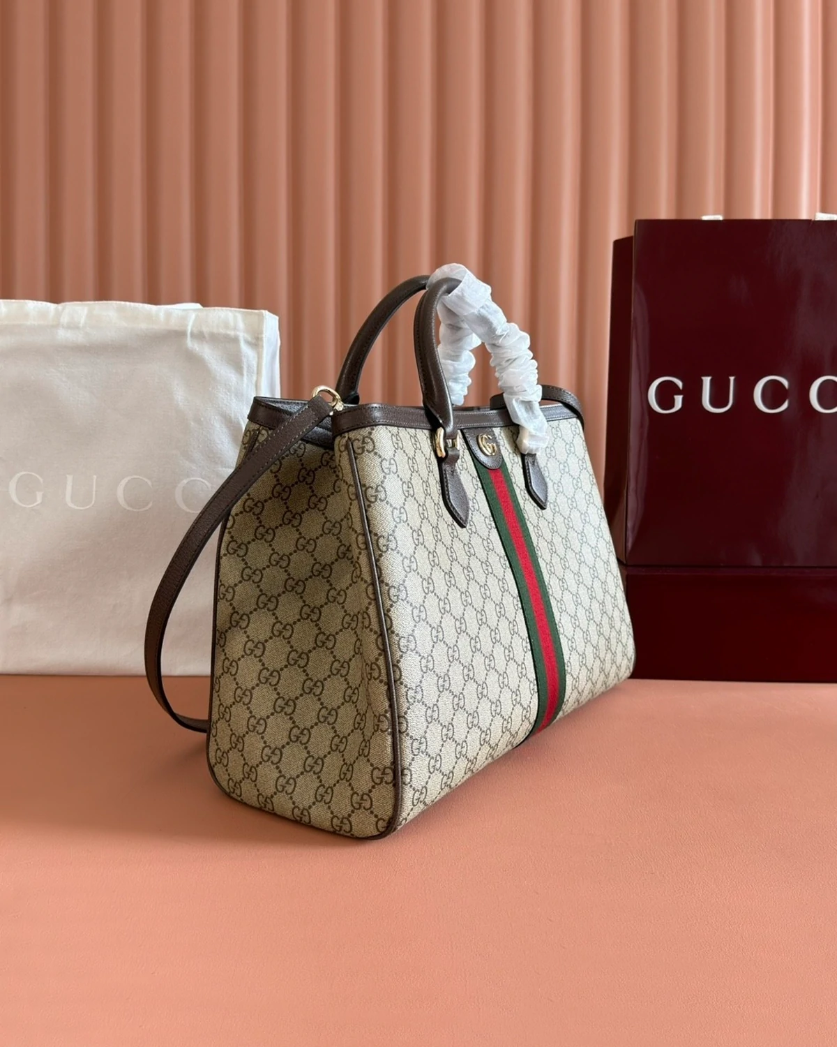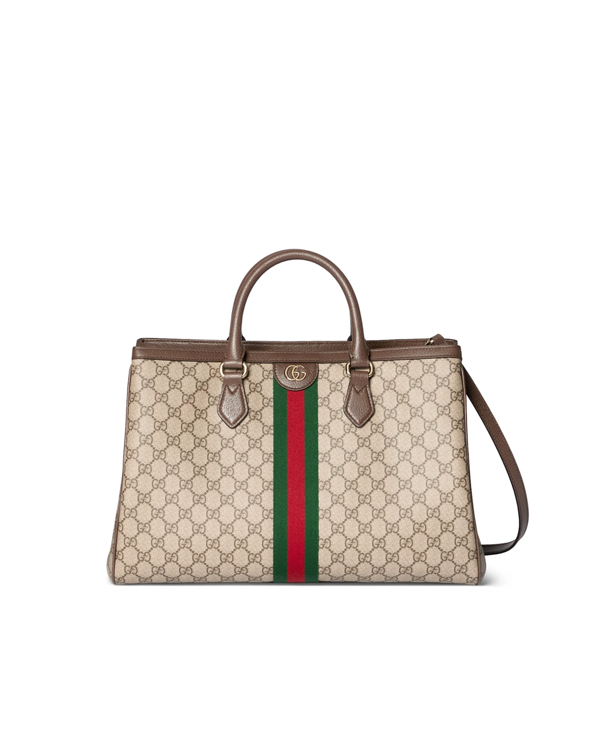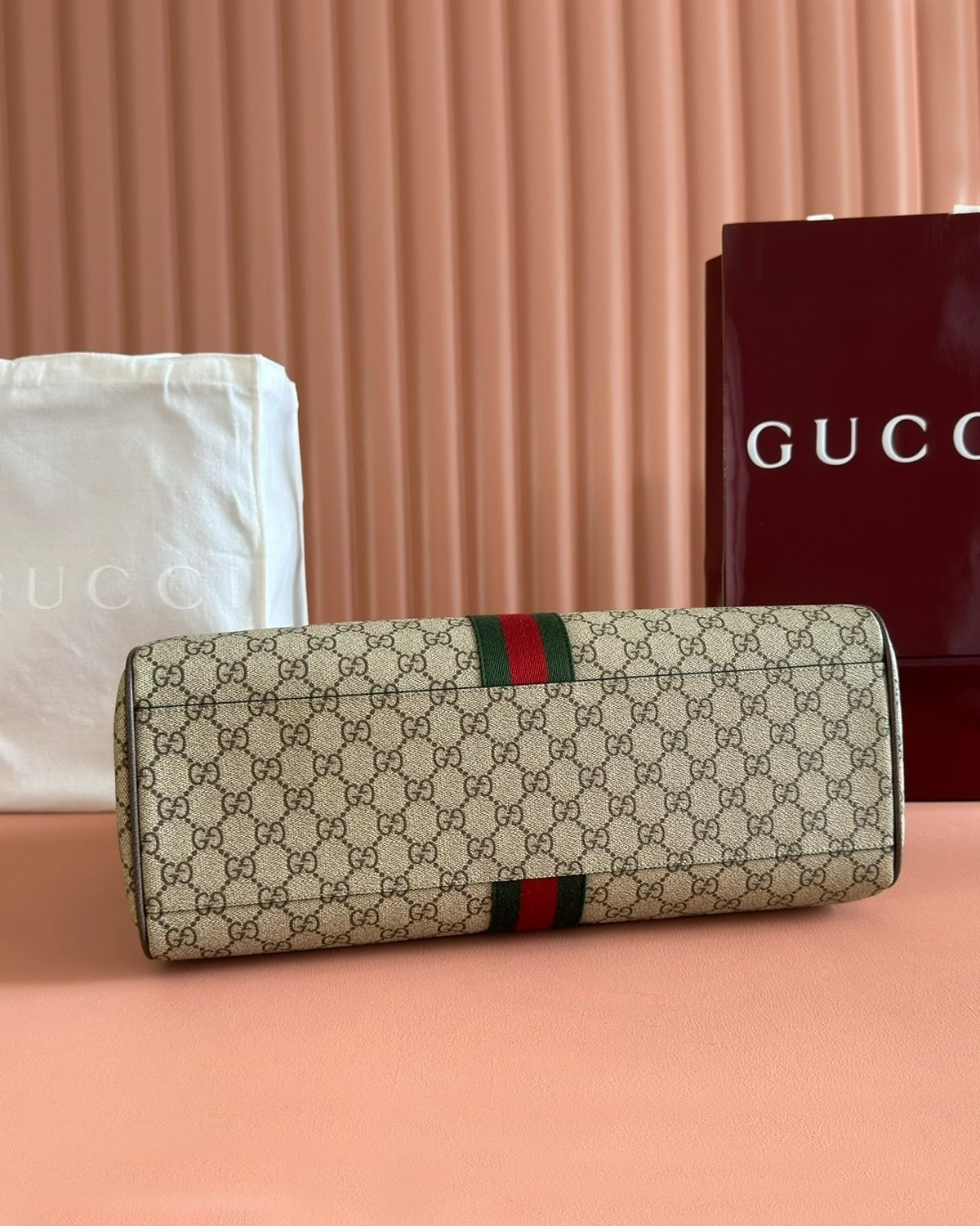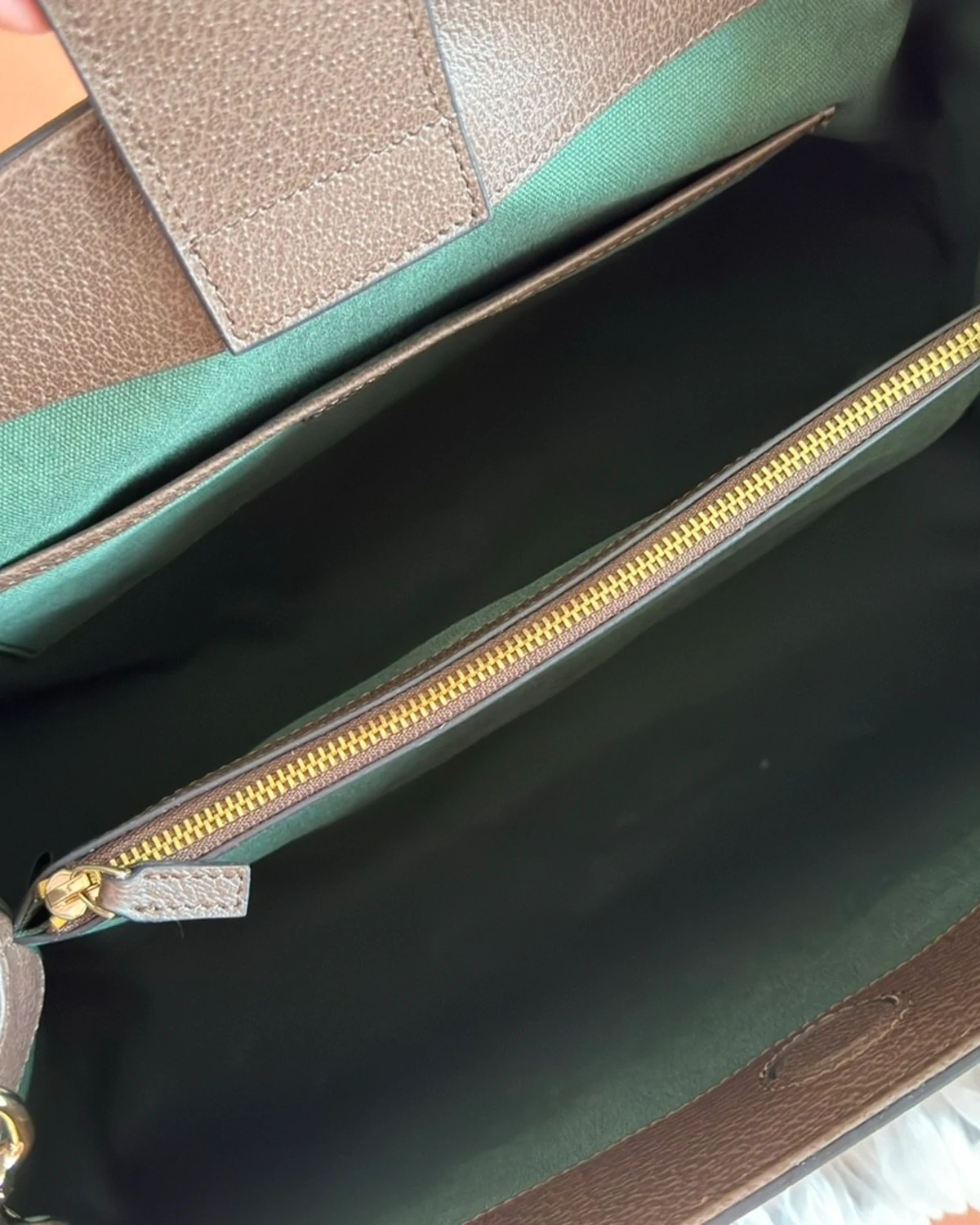 The Ophidia collection evokes the House??s heritage with the signature Web stripe and Double G emblem in light gold-toned finish. The styles are crafted from soft GG Monogram coated fabric, featuring green cotton lining inside.