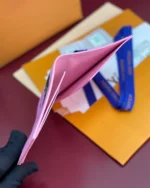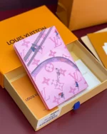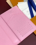 This Passport Cover in baby pink Monogram canvas features a whimsical aerial scene of skaters, celebrating youthful energy in motion. Designed for travel with personality, it holds a passport securely and includes four card slots and a flat pocket??combining function with a fun, expressive twist on a classic accessory.