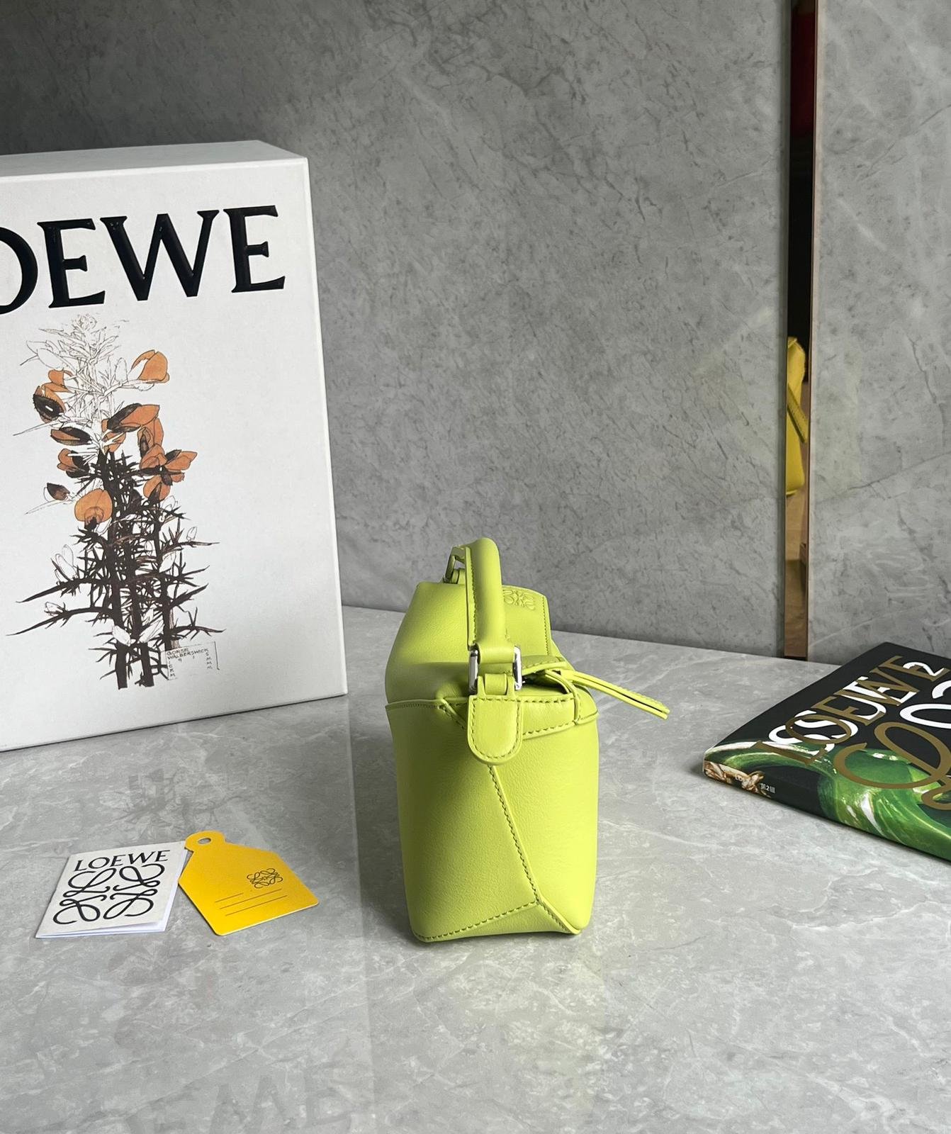 The Puzzle Mini Bag in fluorescent green is crafted from supple calfskin, offering both durability and elegance. Compact and lightweight, the mini size comes with an adjustable strap for versatile shoulder or crossbody styling. With its iconic geometric construction, this bag delivers both functionality and a bold fashion statement??ideal for everyday use and special occasions alike.