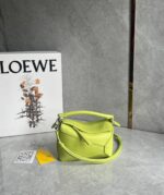 The Puzzle Mini Bag in fluorescent green is crafted from supple calfskin, offering both durability and elegance. Compact and lightweight, the mini size comes with an adjustable strap for versatile shoulder or crossbody styling. With its iconic geometric construction, this bag delivers both functionality and a bold fashion statement??ideal for everyday use and special occasions alike.