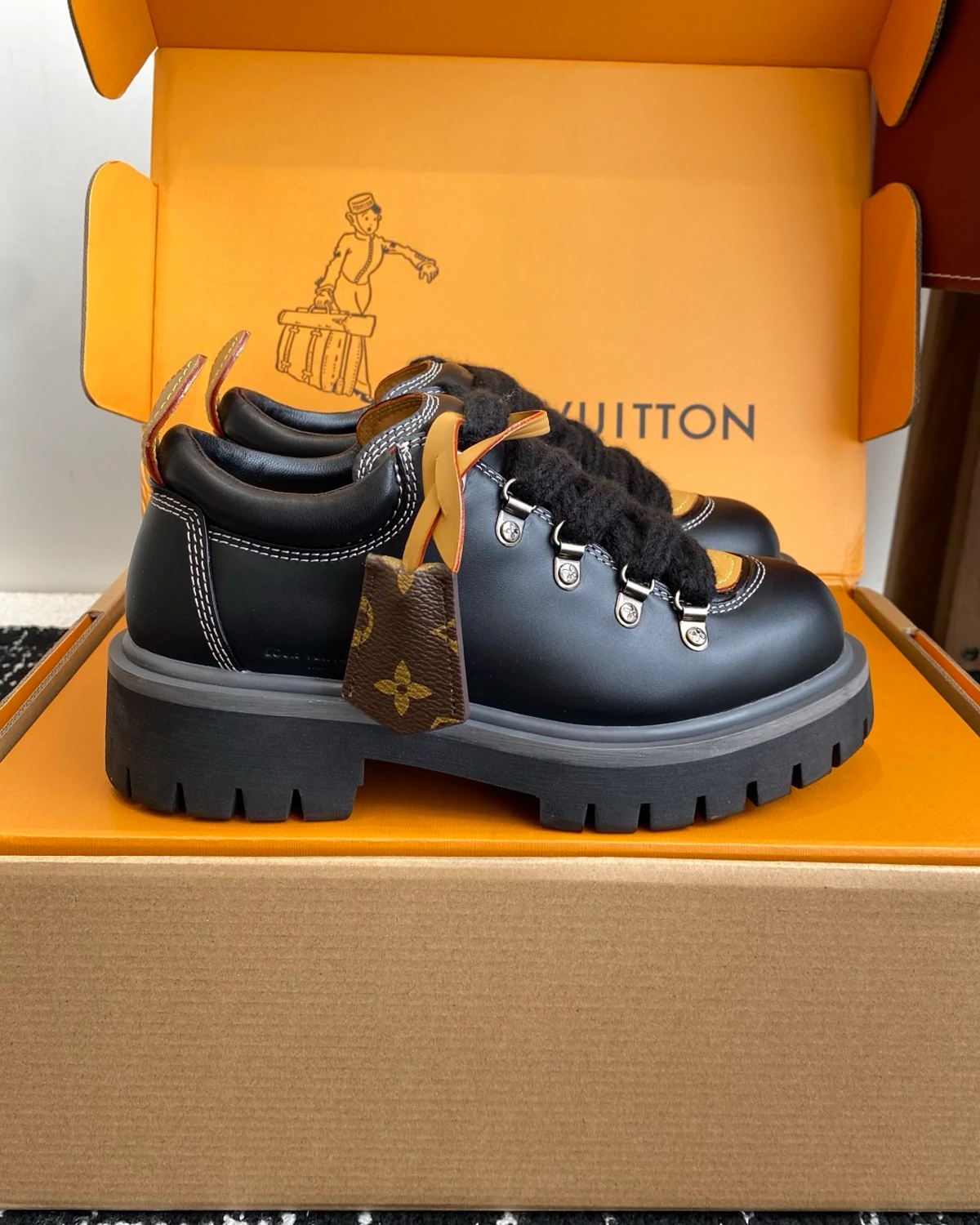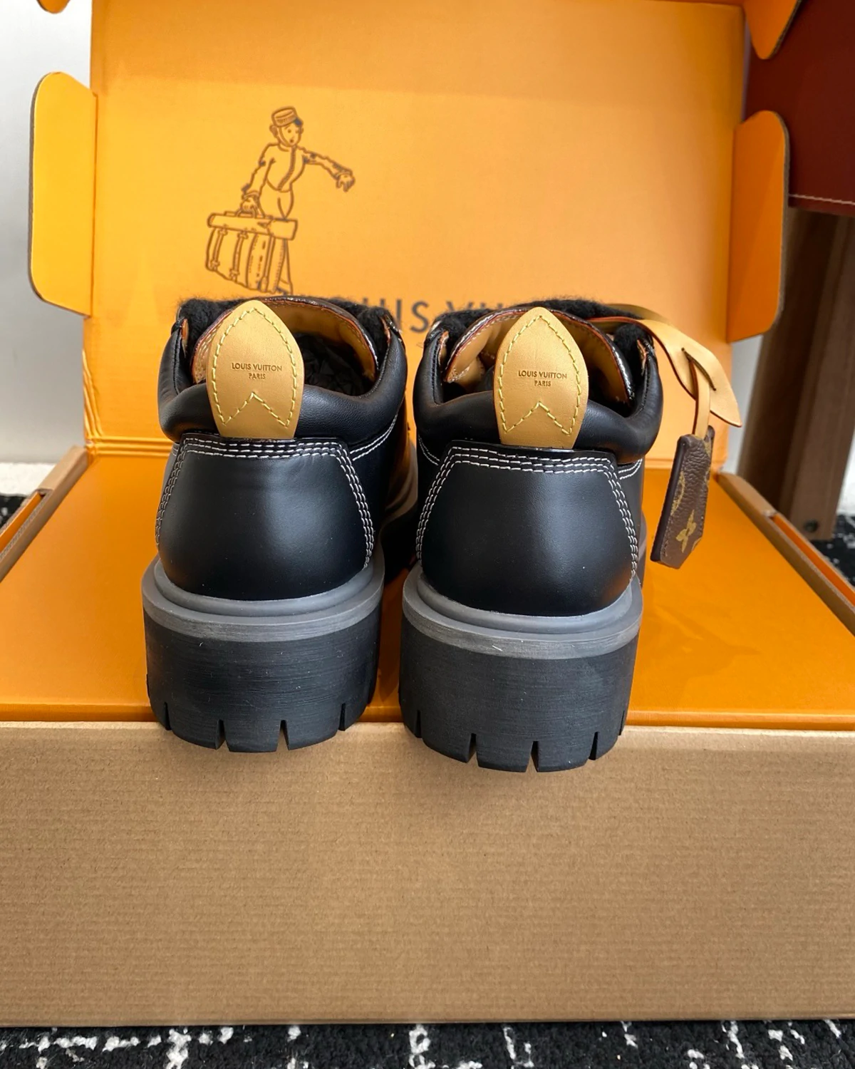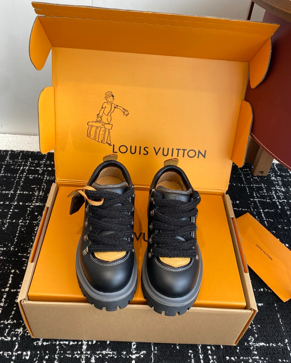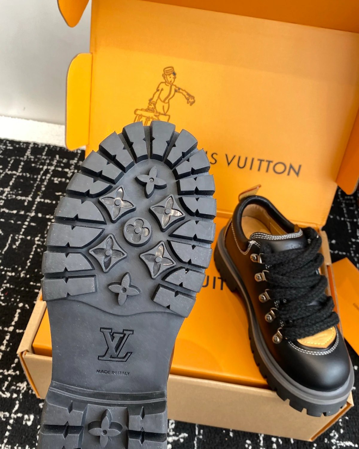 This LV Remix leather shoe is made of calf leather and draws inspiration from classic hiking boots. The proportions have been adjusted to create a fashionable and avant-garde shoe design.