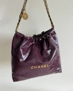 Made of calfskin, this spacious, flat, diamond-quilted half-moon bag features an antique gold-tone nameplate on the front! The drawstring top has a magnetic closure, revealing a tonal fabric lining when opened. The interior includes a zip pocket and a detachable zip pocket. A double leather chain shoulder strap with a decorative logo embellishment stands 9 inches tall and can be carried by hand or over the shoulder. Comes with a dust bag and box.