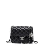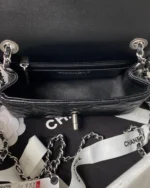 This silver chain CF mini flap bag features a unique silver ball chain, a perfect finishing touch! The adjustable length allows it to easily transform into a waist bag, shoulder bag, or crossbody bag, offering a retro yet sophisticated and effortlessly stylish look.