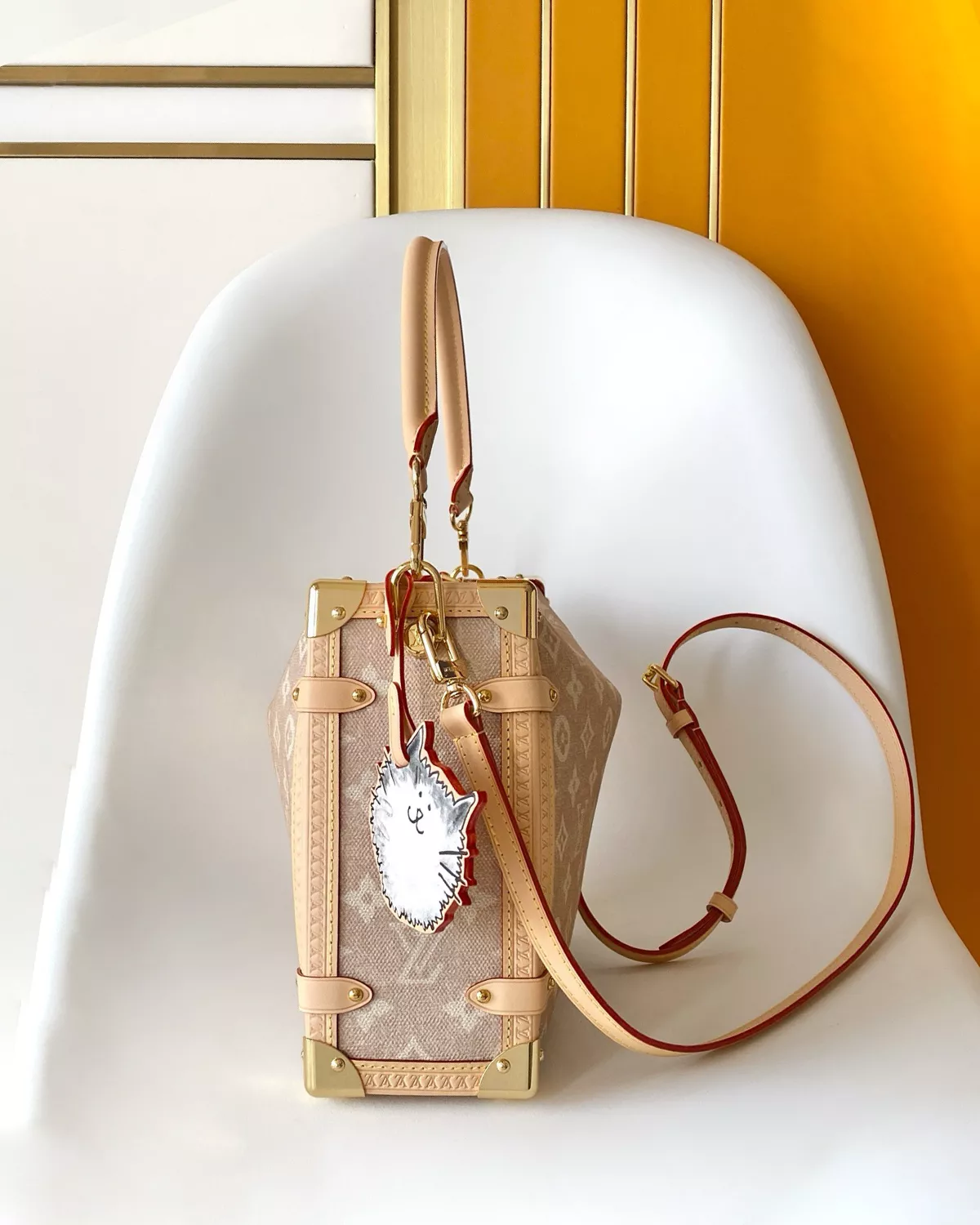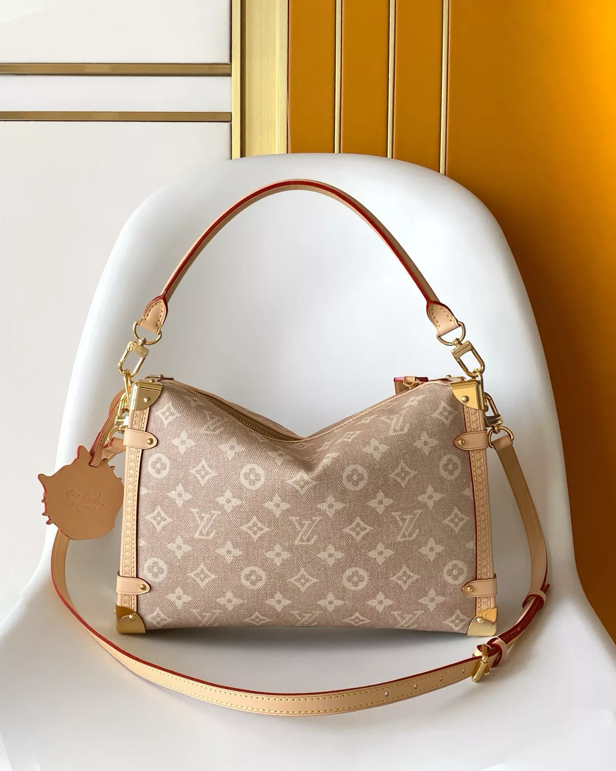 The Side Trunk GM ??Meowgram Canvas?? blends vintage-inspired charm with playful artistry. Designed with a signature Meowgram pattern and trimmed in smooth cowhide leather, this modern trunk bag captures the spirit of travel and creativity.