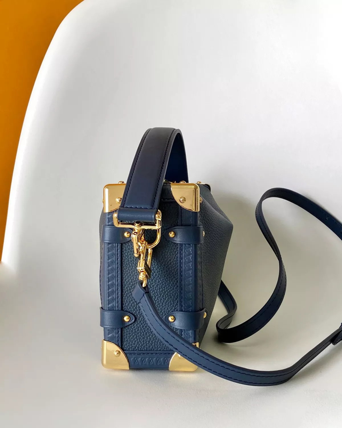 The rebce Side Trunk MM Bag in Navy blends everyday elegance with vintage-inspired design. Taking cues from classic travel trunks, this structured handbag is crafted from smooth calfskin leather with cowhide trim and finished with gold-tone hardware. Its standout detail is the signature S-lock closure, paired with a secure zip fastening. The microfiber-lined interior is sized to fit a 6.7-inch smartphone, long wallet, and daily essentials, making it both stylish and functional. With a removable, adjustable strap and a detachable top handle, the Side Trunk MM offers versatile carry options ?? perfect for both daytime sophistication and evening outings.