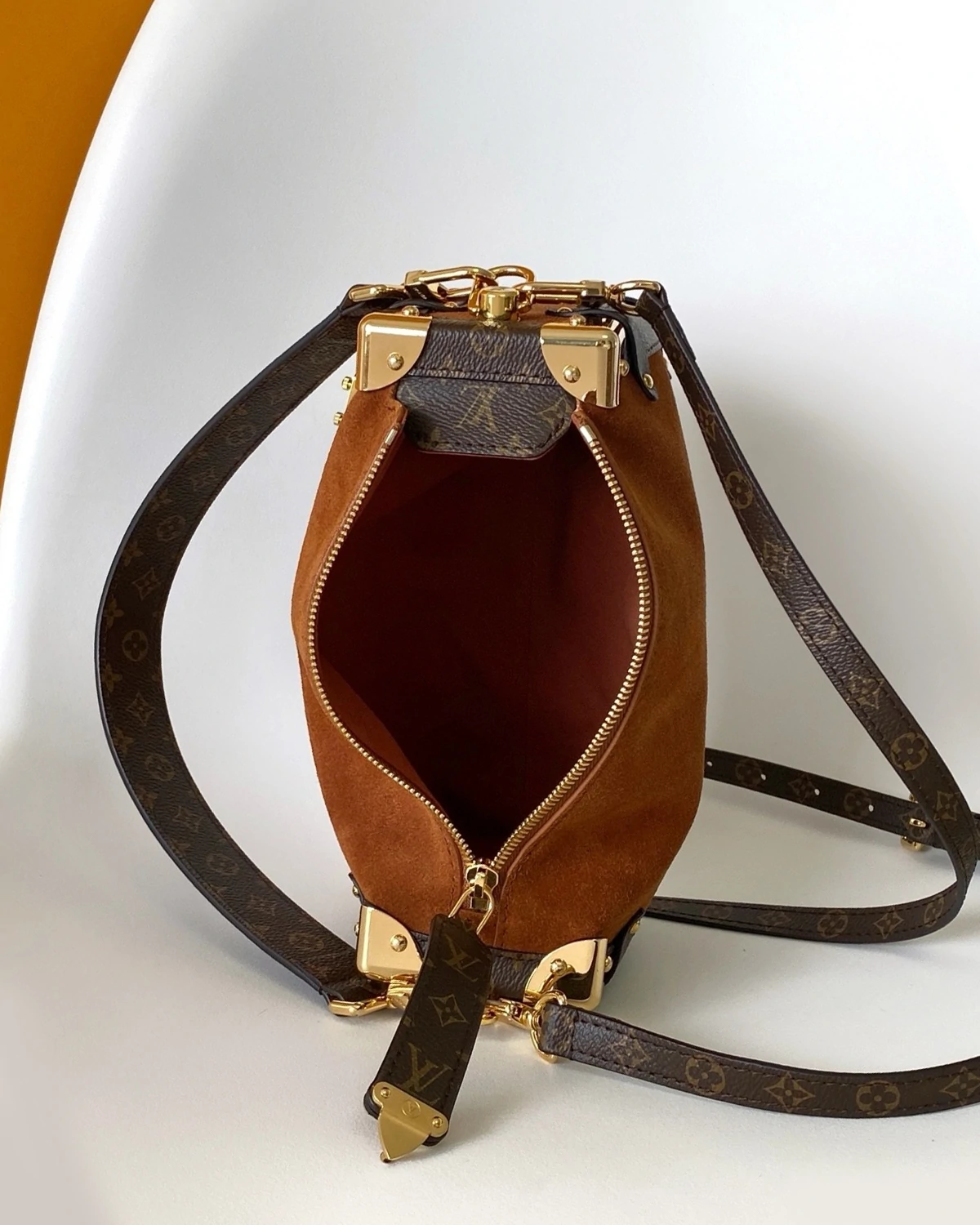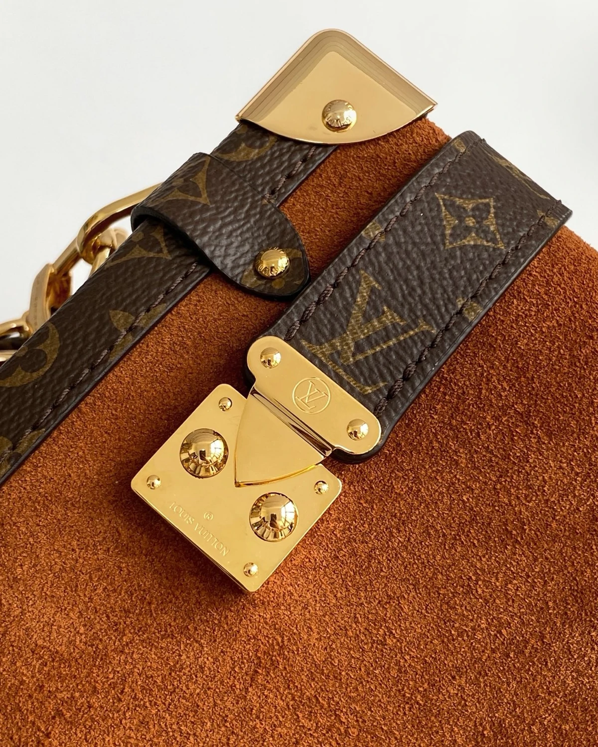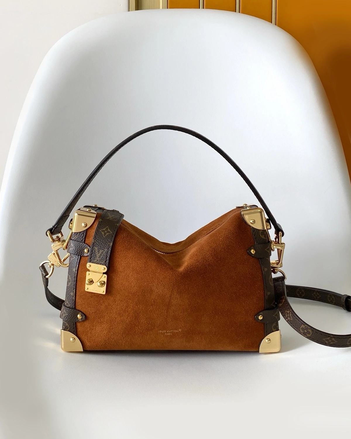 The Back to School collection introduces the iconic Side Trunk MM in a seasonal Tan shade that lends a chic, 70s-inspired feel. Elegant with a bohemian edge, it is trimmed with signature Monogram coated canvas and features gold-toned hardware, including a signature S-lock and removable chain. It is sized to fit everyday essentials, including a favorite lipstick.