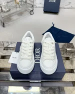 The B33 Spin sneaker reinterprets the timeless tennis shoe through a play on volume and a modern silhouette. Crafted in white grained calfskin, this model is enhanced by tone-on-tone? Gravity leather inserts. An expression of the workshops’ virtuosity, the latter features the iconic Oblique motif delicately embossed on calfskin. The rubber sole with the Oblique motif is enhanced, at the back, by the contrasting 30 Avenue Montaigne signature. These sneakers will bring a contemporary touch to any casual look.