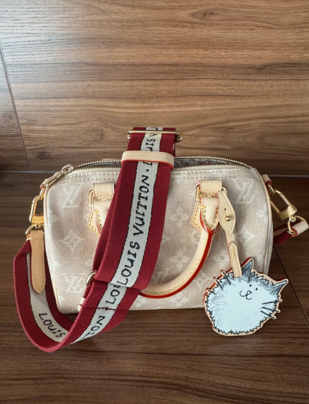 The Speedy Bandouli??re 20 brings a playful twist to a timeless icon. Crafted from signature Meowgram coated canvas, this limited-edition piece captures both charm and sophistication. The adorable cat-shaped leather charm adds a whimsical accent, while contrasting leather handles and sleek gold-tone hardware enhance its refined appeal.