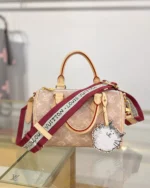 The Speedy Bandouli??re 20 brings a playful twist to a timeless icon. Crafted from signature Meowgram coated canvas, this limited-edition piece captures both charm and sophistication. The adorable cat-shaped leather charm adds a whimsical accent, while contrasting leather handles and sleek gold-tone hardware enhance its refined appeal.