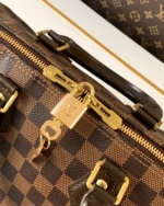 The Speedy Bandouli??re 25 in graphic Damier Ebene canvas is an ideal city bag for every day. Originally created for travelers in the 1930s ?C the name refers to the era??s rapid transit ?C every feature of the Speedy??s design is iconic, from its unmistakable shape to the rolled leather handles, engraved padlock and detachable strap.