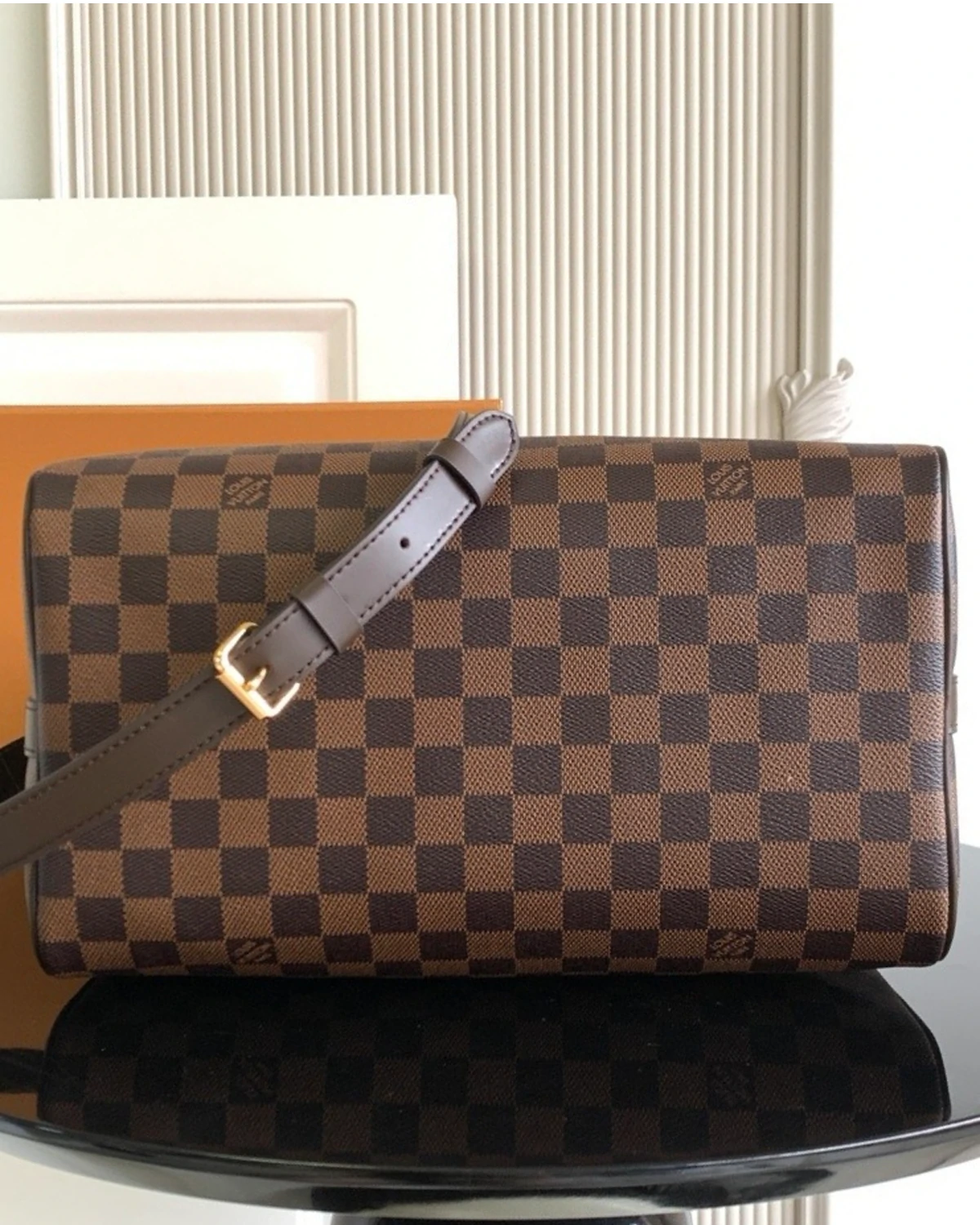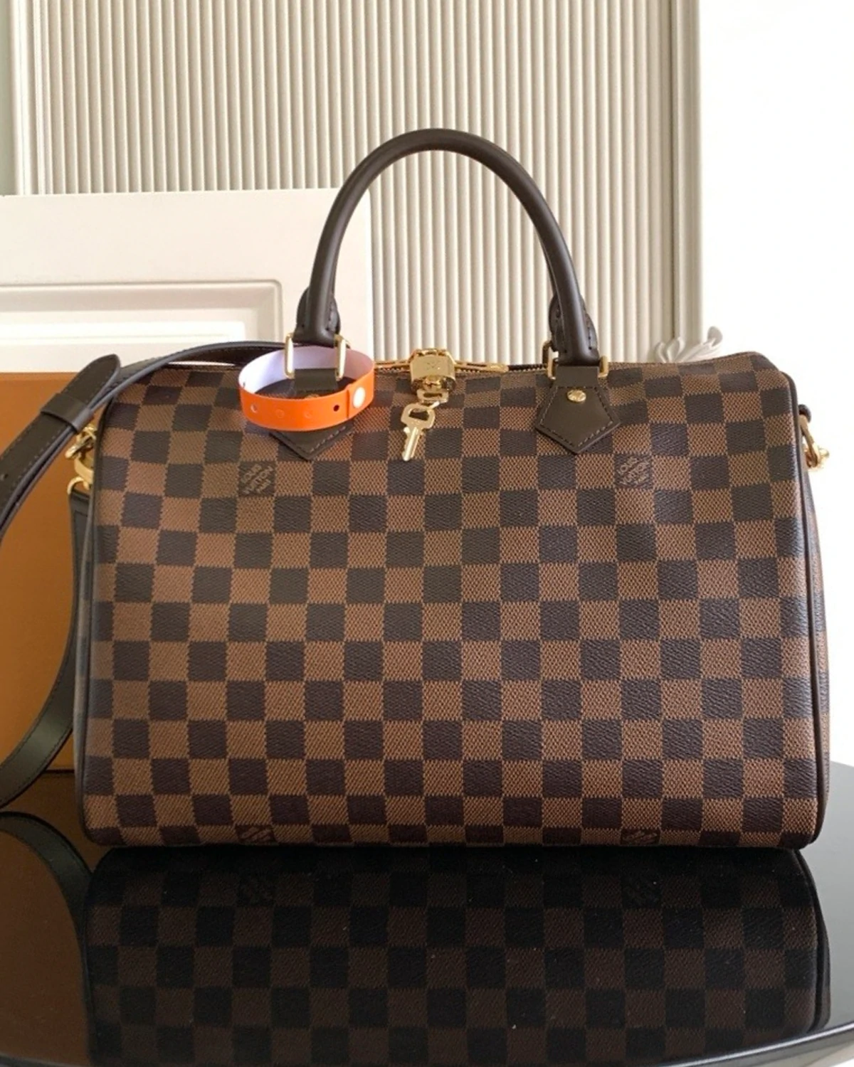 The Speedy Bandouli??re 30 in elegant Damier Ebene canvas is an ideal city bag for every day. Originally created for travelers in the 1930s ?C the name refers to the era??s rapid transit ?C every feature of the Speedy??s design is iconic, from its unmistakable shape to the rolled leather handles, engraved padlock and detachable strap.