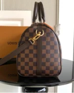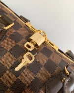 The Speedy Bandouli??re 30 in elegant Damier Ebene canvas is an ideal city bag for every day. Originally created for travelers in the 1930s ?C the name refers to the era??s rapid transit ?C every feature of the Speedy??s design is iconic, from its unmistakable shape to the rolled leather handles, engraved padlock and detachable strap.