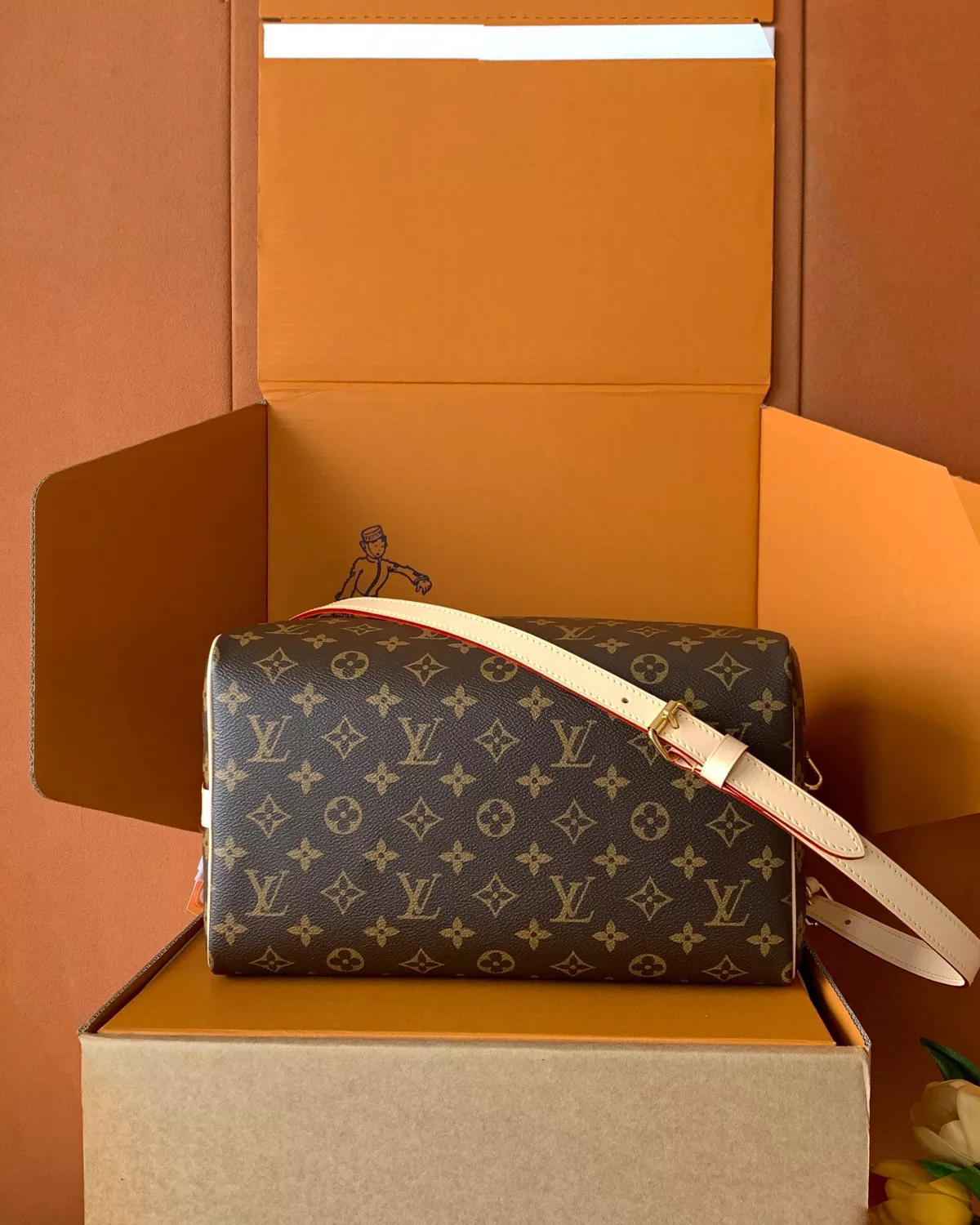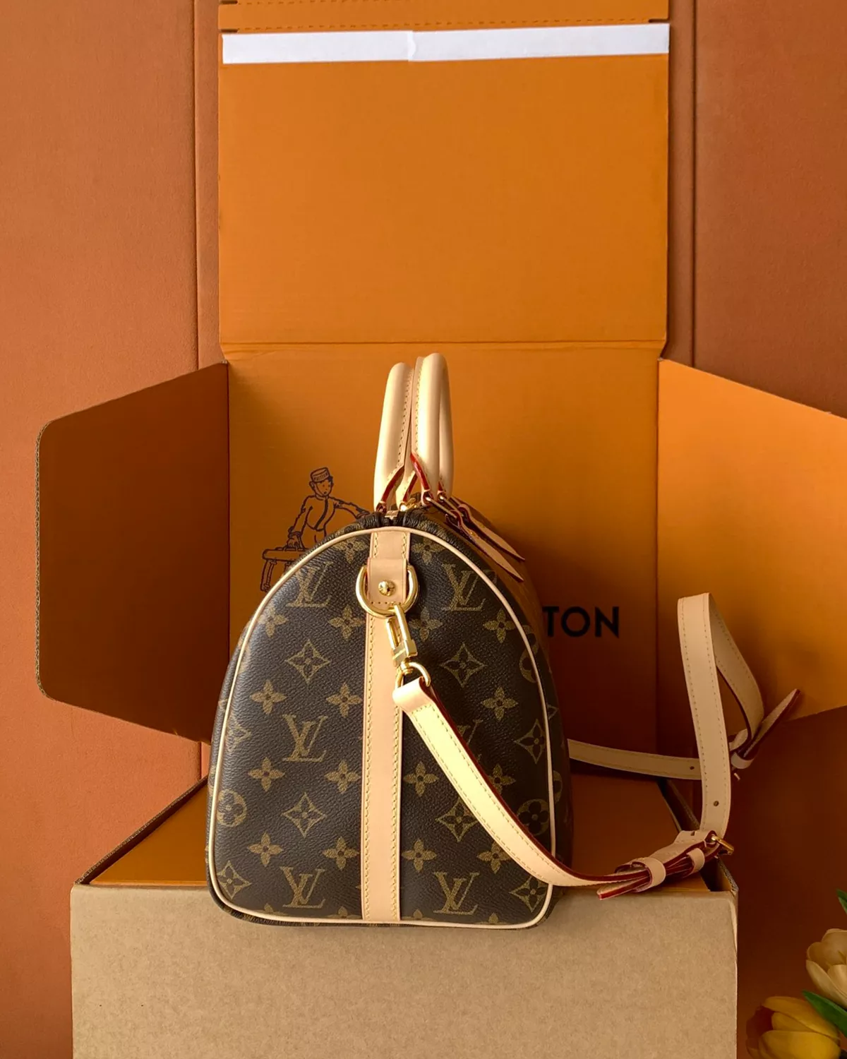 The Speedy Bandouli??re 30 ??Monogram?? is a timeless city bag designed for everyday sophistication. Inspired by the heritage of rapid travel in the 1930s, this iconic silhouette is instantly recognizable with its structured shape, rolled leather handles, and detachable strap.