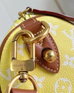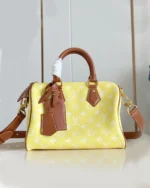 The Speedy P9 Bandouli??re 25 is crafted from calfskin in a yellow hue that fades in the sun. Perfect for everyday use, the Speedy P9 features a removable leather pouch lined with luxurious lambskin, two top handles, and a removable, adjustable shoulder strap for versatile carrying options.