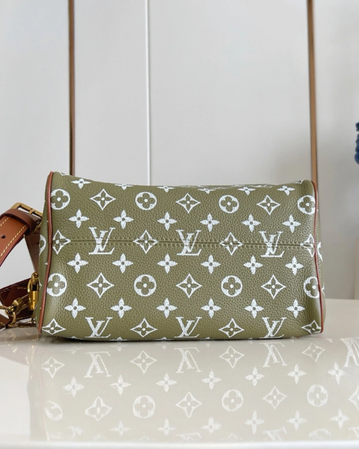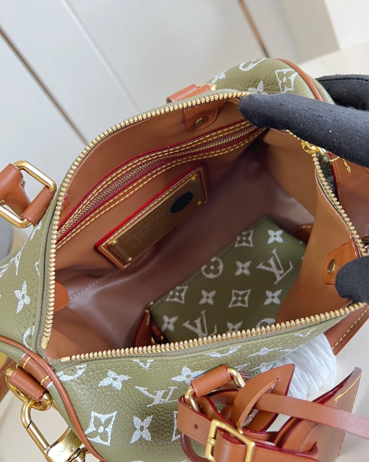 This Speedy P9 Bandouli??re 25 Monogram Leather takes on an ultra-luxurious feel in extra-soft calfskin with a Monogram print that mimics the aspect of Monogram on canvas.