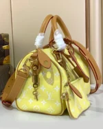 The Speedy P9 Bandouli??re 25 is crafted from calfskin in a yellow hue that fades in the sun. Perfect for everyday use, the Speedy P9 features a removable leather pouch lined with luxurious lambskin, two top handles, and a removable, adjustable shoulder strap for versatile carrying options.