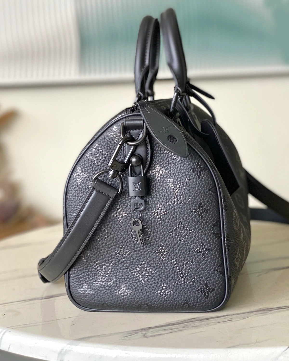 Made from calfskin with a Monogram print, the Speedy P9 Bandouli??re 30 bag is the perfect size: compact but roomy enough for daily essentials. The meticulous detailing, such as the heritage side lock, or the premium lambskin lining, attests to the exquisite craftsmanship of this bag. In addition to the top handles, there??s a detachable strap.
