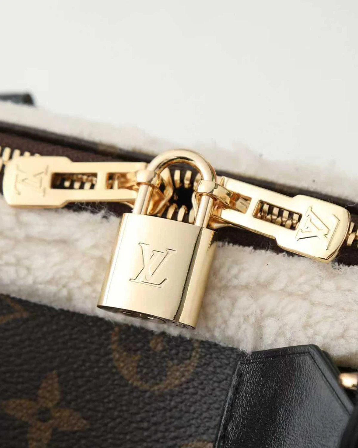 | Material | Monogram shearling, coated canvas, and wool blend |